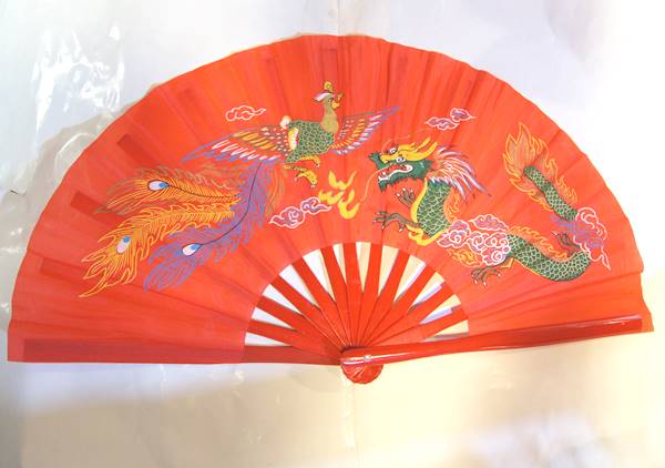 龍鳳凰・功夫(カンフー)扇子・赤色33cmサイズ