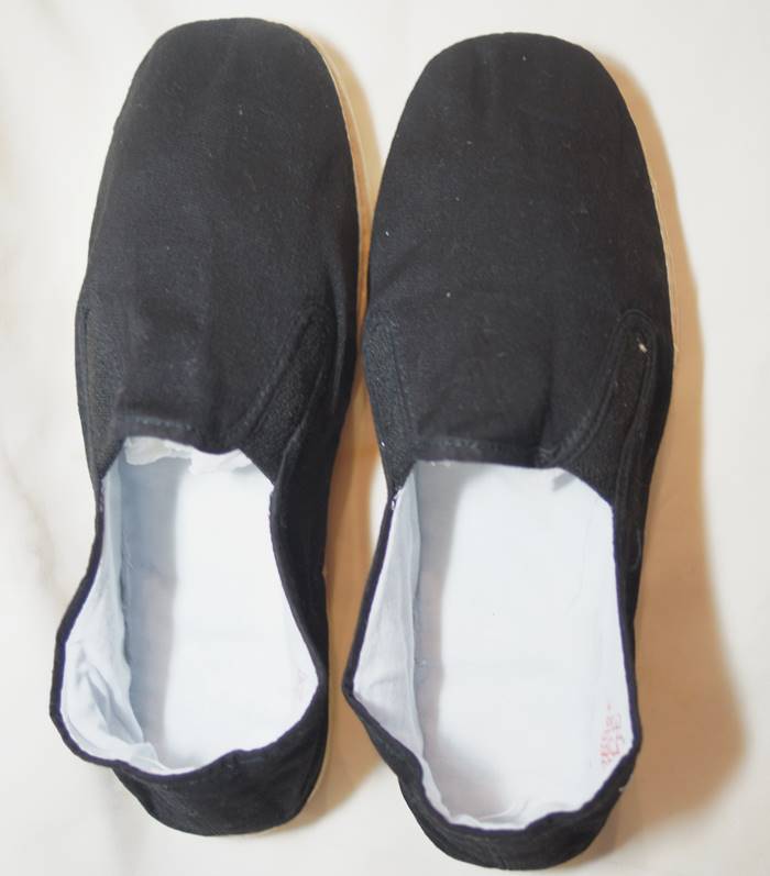 昔ながらの中国伝統的な布靴 カンフーシューズ がこれです。「千層底」といわれる伝統技法で、靴底が何層にも重ねた木綿布で、糸で頑丈に縫い付けています。そのため、通気性があるので、夏場のスリッパや室内履きにもご利用できますが、 雨天の外出には向きませんので、ご注意ください。