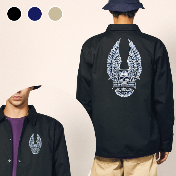 フライングスカルアイアンクロス コーチジャケット バイカー バイク ドクロ チョッパー アメ車 アメカジ 秋物 冬物 防寒 バイクウェア 作業着 ワークジャケット