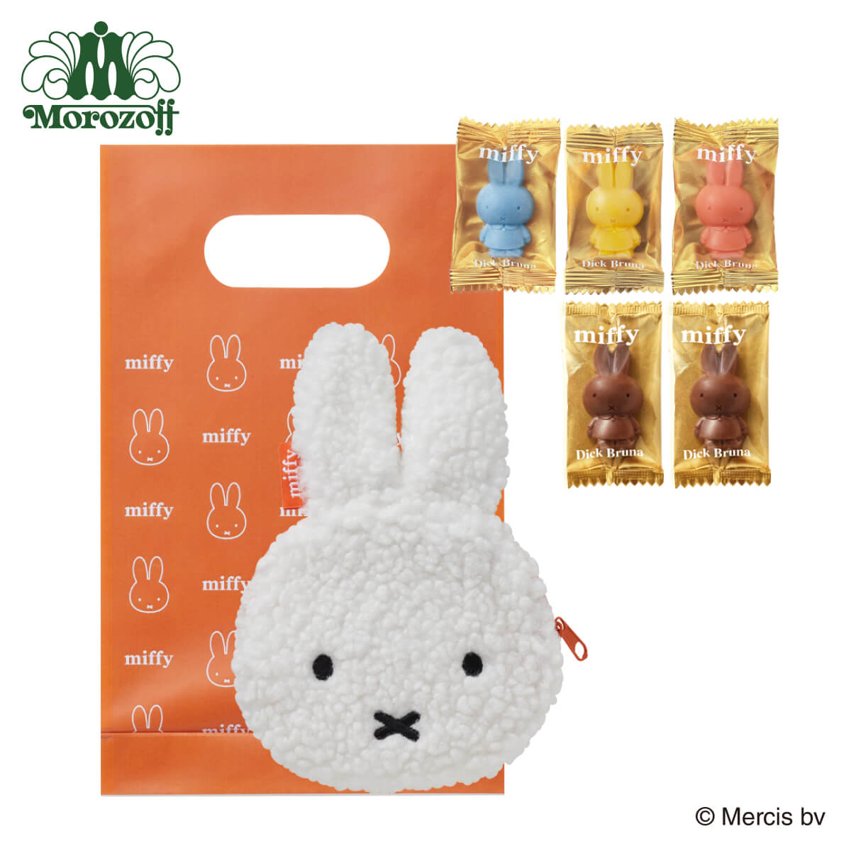 ふわもこボア素材のミッフィーフェイスポーチに、カラフルなミッフィー型チョコレートが楽しい詰合せ。