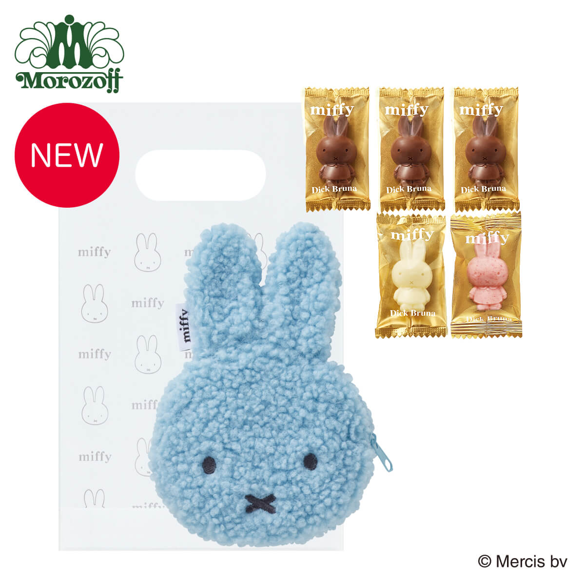 ふわもこボア素材のミッフィーフェイスポーチに、カラフルなミッフィー型チョコレートが楽しい詰合せ。