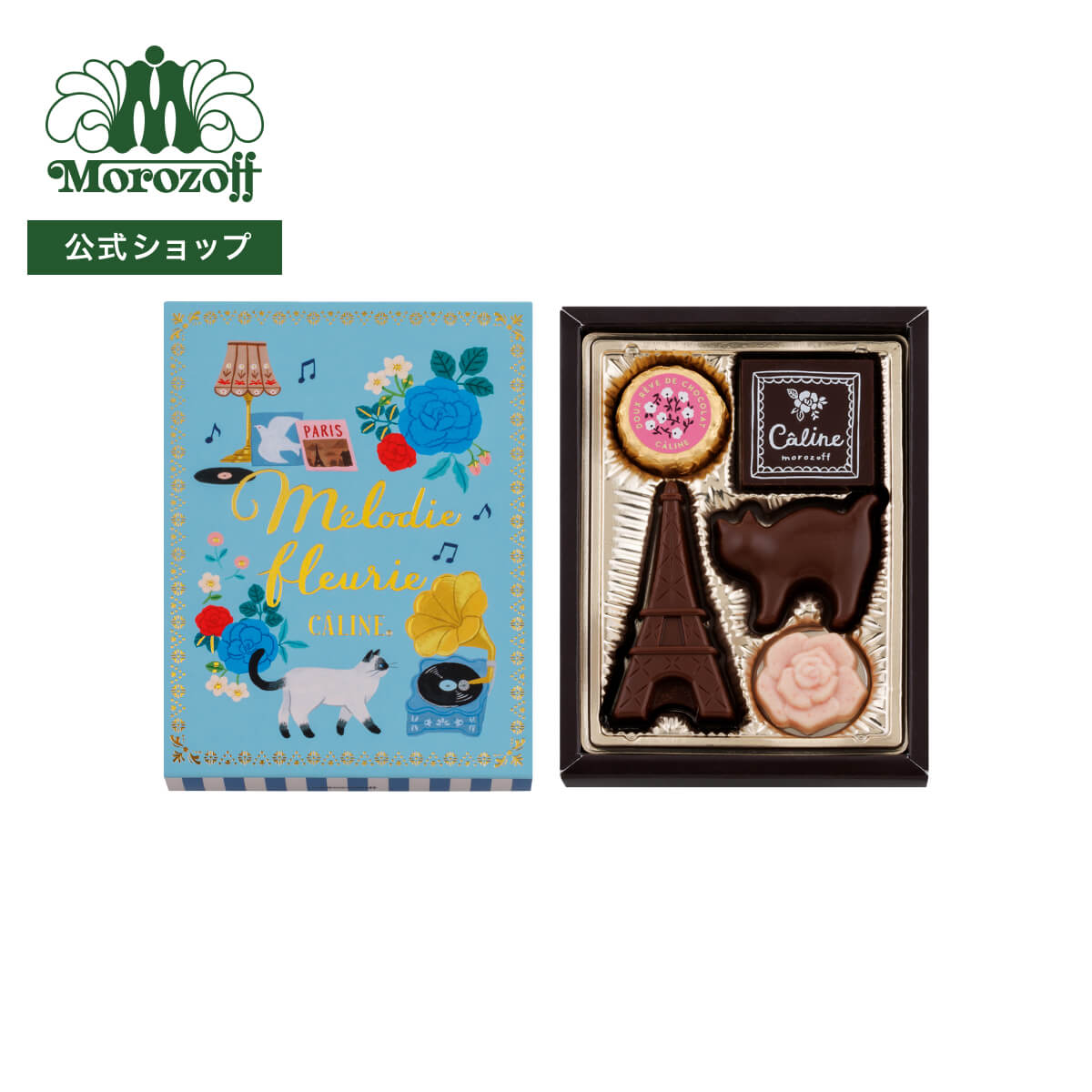 猫やエッフェル塔、バラなどキュートな形のチョコレートを詰め合わせました。