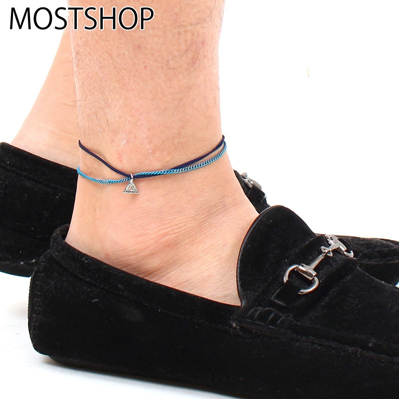 アンクレット メンズ レディース アクセサリー シンプル トライアングル プレート 紐 ひも ヒモ チェーン メンズファッション小物