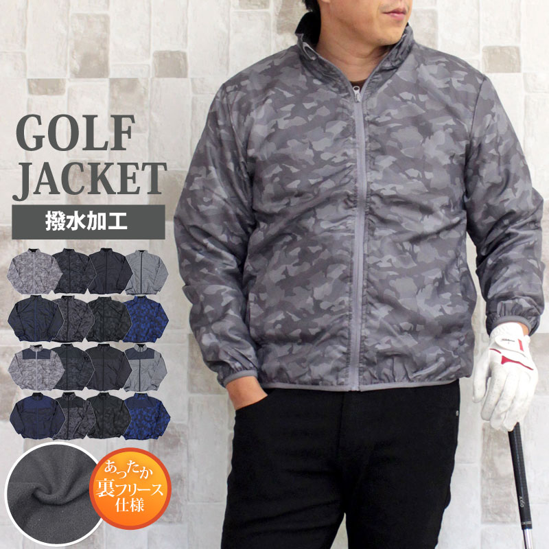 ゴルフジャケット メンズ ゴルフウェア 裏起毛フリース 撥水加工 アウター ブルゾン スタンドネック ジップアップ 総柄 スポーツウェア 暖かい 防寒 秋冬