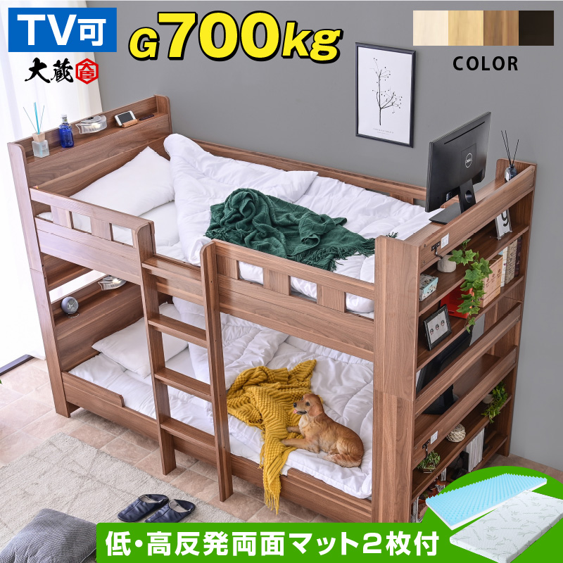 | 当店の おすすめ ポイント | \アウトレットで激安大特価!/ ・2口コンセント&LED照明 宮棚付き(ヘッド、フット共に) ・フットの宮棚はTVが置けるほどのフリースペース! ・フット側には大容量のマガジンラック完備 ・大人も入りやすい下段の空間高さ ・ハシゴが垂直だからスペース広々! ・上下連結は耐震式でやんちゃなお子様も安心 ・オールシーズン快適なLVLスノコ板採用 ・リアルな繊細木目 メラミン強化シート張り ・シングルベッド2台としてのご使用可能 |