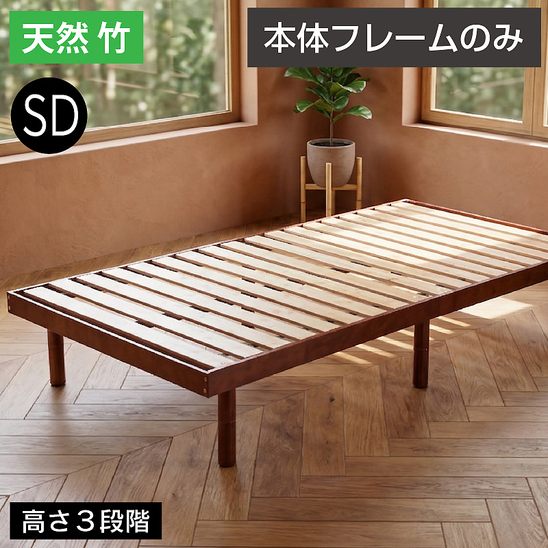 天然木竹 本体フレームのみ ベッド ベッドフレーム 最安値挑戦 セミダブルベッド すのこベッド ローベッド ベッド 3段階高さ調節 モデル1-ART