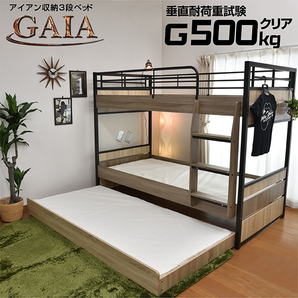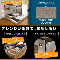 | 当店の おすすめ ポイント | \古木柄とブラックアイアンを組み合わせた3段ベッド/ ・高さわずか160cmとコンパクト ・下段はスライド式ベッドで収納としても使える ・ロータイプだから小さなお子様も安心 ・転落防止のサイドフレーム付き ・床板の中心にフレームを追加して強度をアップ! ・キャスター付きで移動もラクラク ・市販のクリップ式ライト取り付け可能 ・左右取付可能な垂直ハシゴでスペースを有効活用 ・ハシゴの踏み板は幅広10cmで昇り降りがラクラク ・オールシーズン快適なスノコ板 ・シックハウス対策として環境整備基準を満たした資材を使用 |