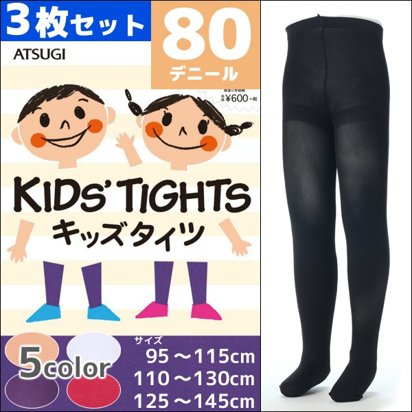 【メール便送料無料】3枚セット KIDS'TIGHTS キッズタイツ 子供用タイツ スクールタイツ 80デニール アツギ ATSUGI 通販