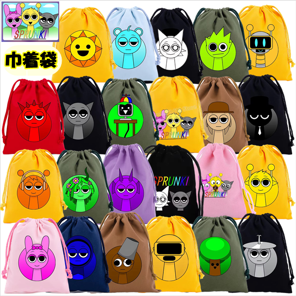 スプランキー 巾着袋 バッグ SPRUNKI ゲーム 音楽 モンスター キャラ INCREDIBOX おしゃれ 可愛い 入園入学 保育園 幼稚園 学校 部活 体操着袋着替え入れ 新学期