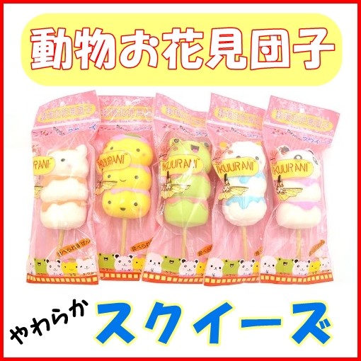スクイーズ 動物お花見団子 おだんご アニマル 可愛い もちもち やわらか マスコット 和菓子 食玩 食品サンプル 低反発 選べる全5種