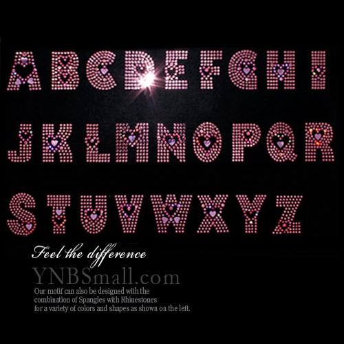 【アルファベット】 スパンコールモチーフ 【A-Z】 (ピンク&ハート) アイロン接着可 Tシャツのポイントにピッタリ 小さめサイズ