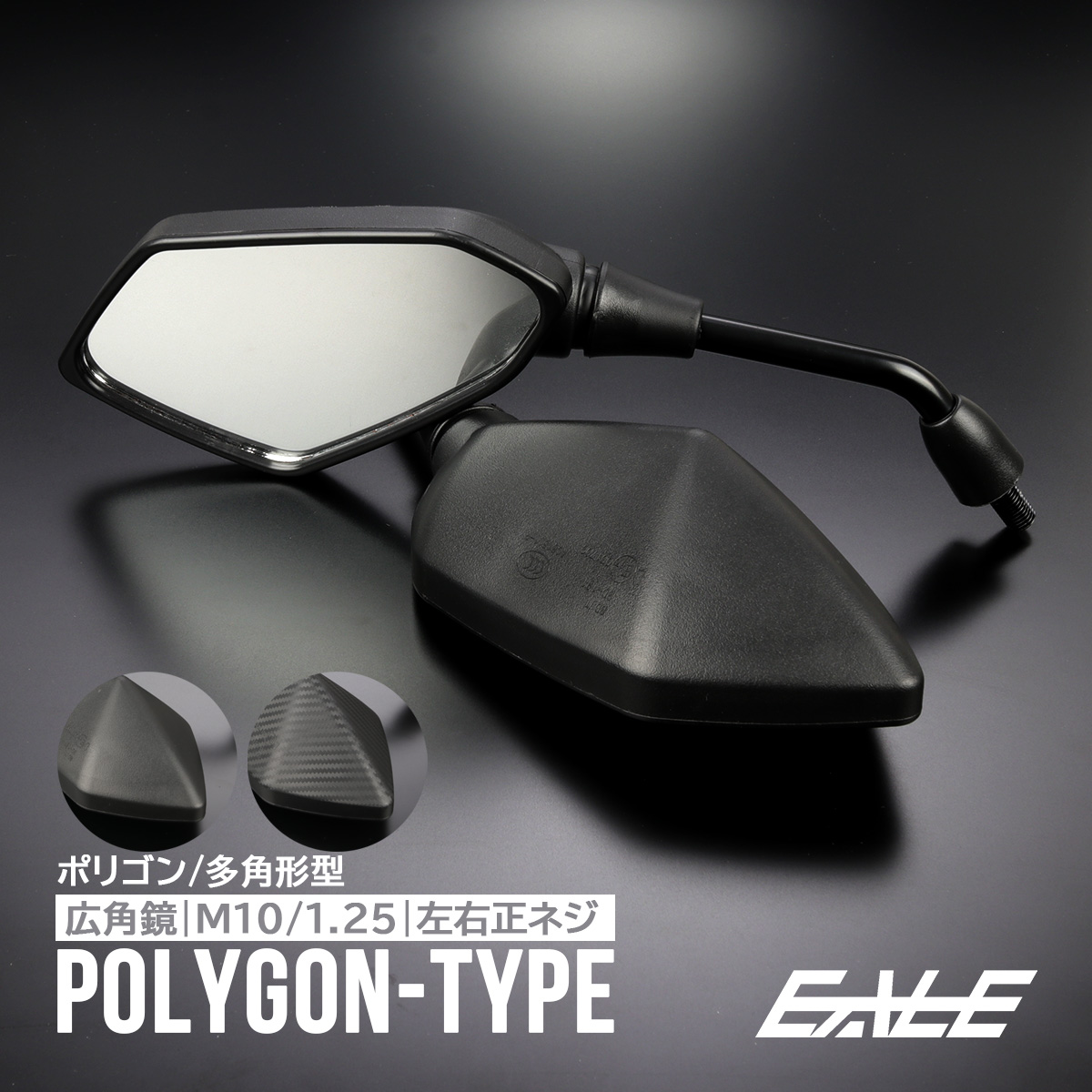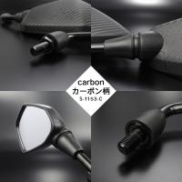 バイクミラー ティアドロップタイプ ポリゴン M10 正ネジ 広角鏡 多角形 ブラック カーボン柄 左右セット 汎用 S-1153