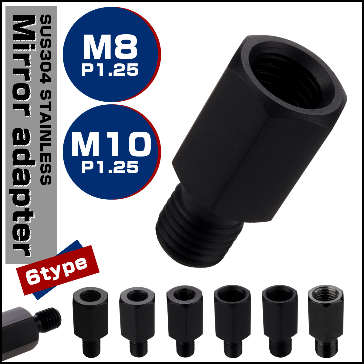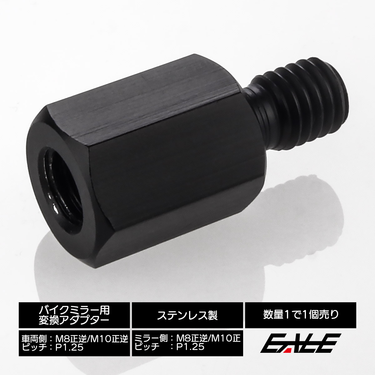 ミラーアダプター ミラー変換アダプター M8 M10 P1.25 正ネジ 逆ネジ 変換プラグ ステンレス ブラック S-901-906