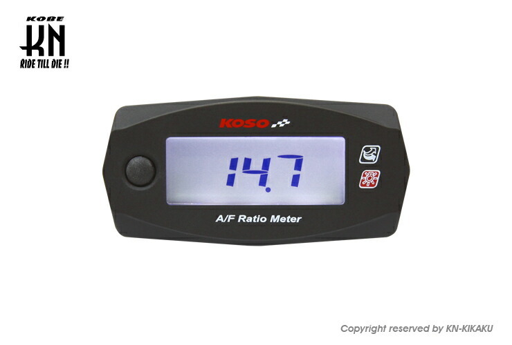 ■適合■・汎用■詳細■<仕様諸元>・表示可能範囲:12.2-17.2(最小変化単位:0.1)・使用電圧:DC12V(ボタン電池非使用時)・電池使用時消耗目安 約450時間・作動可能範囲:外気温-10から+60度・仕様規格:JIS D 0203・本体サイズ:69.8×34.4×17.2mm・本体重量 約47.6g<付属品> ・メーター本体×1・センサーハーネス×1・O2センサー×1・割り込みコネクター×2・マジックテープ×1・本体取付ボルト&ナット×1セット・ボタン電池CR2032×1・センサー溶接用ボス&メクラ×1・日本語説明書&保証書×1<保証内容>・お買い上げより12か月間・KN企画正規品のみの保証▲注意点▲※O2センサーが排気熱による加熱で活性化され空燃比が表示されます。冷間時には数値表示されません。※エンジン始動後でも、センサーが活性化される温度に達していない場合、数値表示されません。※多気筒車両の集合部以降に取り付けすると、センサーが活性化される温度に達しない場合があります。※センサーボスの溶接位置は、なるべくシリンダーヘッドに近い位置