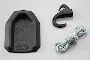 駐輪場、ガレージの床を保護。焼けたアスファルト、砂場、ぬかるみ等さまざまなシチュエーションでの沈み込みを防止。紐&フック付きなので、外し忘れを防止します。国産車のハンドル、ミラーに掛けてご使用いただけます。
