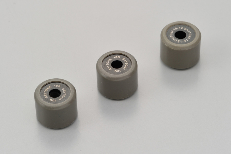 ■適合車種■・JOG(FI)[SA36J/SA39J]・JOGデラックス(FI)[SA36J/SA39J]・JOG-ZR(FI)[SA36J/SA39J]・ビーノ[5ST/13P/37B]・ビーノモルフェ[5ST/13P/37B]■詳細■○サイズ:外径φ15(幅12mm)○3個入り○組付方向指定なし○デイトナ製PAプーリー(ホンダ車用 品番:45553)適合サイズ・3.0g(90447)・3.5g(90448)・4.0g(90449)・4.5g(90450)・5.0g(90451)・5.5g(90452)・6.0g(90453)・6.5g(90454)・7.0g(90455)・7.5g(90456)・8.0g(90457)・8.5g(90458)・9.0g(90459)・9.5g(90460)・10.0g(90461)▲注意点▲※製品個体差により、サイズ・グラム数などの刻印が見え難い場合があります。予めご了承ください。※一体成型品ですが、樹脂部が磨耗した状態でのインナーメタル抜けを保証するものではありません。交換時は必ず慣らし運転を行い、その後も
