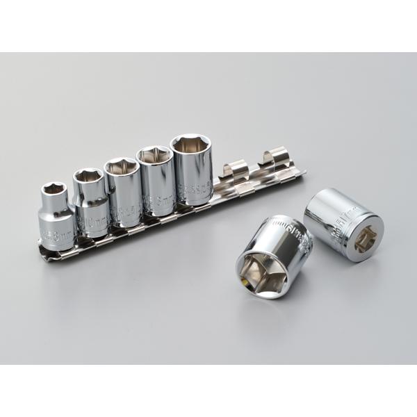 差込3/8インチ(9.5mm)角のお手軽ソケットセット。サイズ:8、10、12、13、14、17、19mm(7個セット)。