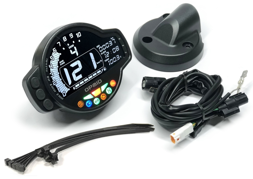 ※キャンセル不可商品です。※余裕を持ってお買い求めください。m(_ _)m【OPマルチメーター】タコメーター・ギアポジション・時計・油温計など、欲しかった機能を追加装備したアップグレードメーター。コントラスト比の高い大型ディスプレイを採用し、視認性も格段に向上しています。完全ボルトオン・カプラーオン設計。適合車種 モンキー125、CT125 ハンターカブ【仕様】・スピードメーター:-199km/h(124MPH)・速度警告灯、最高速度記録付き・F/Rスプロケット交換やタイヤサイズ変更時の補正可※・オドメーター:-99999km(99999 mile)・任意の値から開始できるユーザーオド機能付き・トリップメーターA/B:-9999.9km(9999.9 mile)・オイル交換距離計:500-6000km(設定単位500km)(300-3900mile)・減算式、0km以下になるとマイナス表示。・時計:12時間表示・ランニングタイム(走行時間計):-99時間59分(1分単位)、100時間-(1時間単位)・アワーメーター(エンジン稼働時間計):-99時間59分(1分単位)、100時間-(1時間単位)・エンジン温時計:マイナス10-180度(華氏14-356)※2・高温警告灯付き・電圧計: 8V-18V・タコメーター:-10000または-13000rpm・表示レンジ切り替え機能付き(ノーマルエンジン向け10000rpm、改造車向け13000rpm)、高回転数記録付き・シフトインジケーター・グリーン→レッド→グリーン&レッド(両点滅)の3段階に点灯します。各回転数を任意で設定可。・ギアポジション※・社外のクロスミッション使用時の減速比の変更対応(最大6速)・燃料計:6段階・オープニング表示:2種類から選択・本体サイズ: W128mm×H98mm×D52mm・安定作動電圧:DC10-16V※ABS付き車に関しては以下のことをご注意ください。クランクケースにあるメーター用車速センサーはABS装置の後輪用と兼用のため、スプロケットを変えたことによる前輪:後輪の回転差が許容範囲外になった場合、エラー(警告ランプが点滅)となりABSは機能しません。マルチメーターに備えている速度補正機能はメーター内部での補正のため、ABS装置(モジュレーター)側の出すエラーの対策にはなりません。ABS付き車でスプロケット交換をした場合は、車速センサーのところで信号を補正する装置(OPMIDドクタースピード等)が必要になります。※純正温度センサーの計測値を表示します。表示値はOBD2ツールへの出力値と同値です。シリンダーヘッドで高温になったオイルがクランクケースに戻る通路部分に純正温度センサーは装着されています。最も熱いところで計測しているため、オイル全体の平均温度や底部にあるドレンボルト温度より必ず高い値を指します。走行風が当たらず、オイルの循環量も減る停車中(アイドリン中)や、高回転・低速走行になるきつい上り坂などでは、発熱量>冷却力となり、燃焼部に近い純正温度センサーの値はすぐに上昇し始めます。また、CT125はオイル全量が約20%少ないこと+遠心クラッチの摩擦熱等の理由でエンジン温度の平均値がモンキー125より15度ほど高い結果が出ています。参考値)気温20度付近・ノーマルエンジンモンキー125:走行中は110-115度、停車中120-125度CT125:走行中125-130度、停車中は135-140度「停車中」は数分間の信号待ちの値で、長く止まる程上昇します。純正温度センサー利用以外の選択肢として、後付けの温度センサー用の読み込み回路も備えています。モンキー125・CT125共通のドレンボルト型の温度センサーを2021春頃に発売予定。※後付の算出式ギアポジション機能の仕組み基本的な仕組みはメーターが速度信号とエンジン回転数信号の比率から減速比を割り出し、それを元にギア段数を選んで表示するというものです。仕組み的な欠点として、クラッチが切れている時や半クラ中は、速度信号とエンジン回転数信号の関係性が固定されていないため正確なギアを割り出せません。大型車などに最初から装備されている純正ギアポジションはシフトドラムの部分に各ギアの接点をもつスイッチセンサーを備えており、それと比べるとリニア感が劣ることご了承ください。CT125の場合には1次側の遠心クラッチ(主にスタート用)と2次側の多板クラッチ(シフトチェンジ用)の2つのクラッチがあるため、モンキー125と比べると走行中の「速度信号とエンジン回転数信号の関係性が固定されていない時」=半クラ状態が多くなりがちです。特に低回転時で1次側遠心クラッチが切れている、切れかけている回転数では算出ができません。減速比の算出自体は約0.1秒毎に行っていますので、リアルタイムとまでは行きませんが、1次クラッチの滑らないエンジン回転域でシフトアップ、シフトダウンして頂いた時に本来の反応速度を発揮いたします。回転数で言うと、できれば3000rpm以上をキープ、2500rpm以下にはならないようにしていただくといい感じになります。モンキー125の場合は手動クラッチのみのため、クラッチレバーを離せばすぐに正確なギアを表示できますが、例えば 2 速で全開走行中に、クラッチを握りアクセルを戻して惰性で走行(速度はゆっくりと下がるが、エンジン回転数は一気に下がる)
