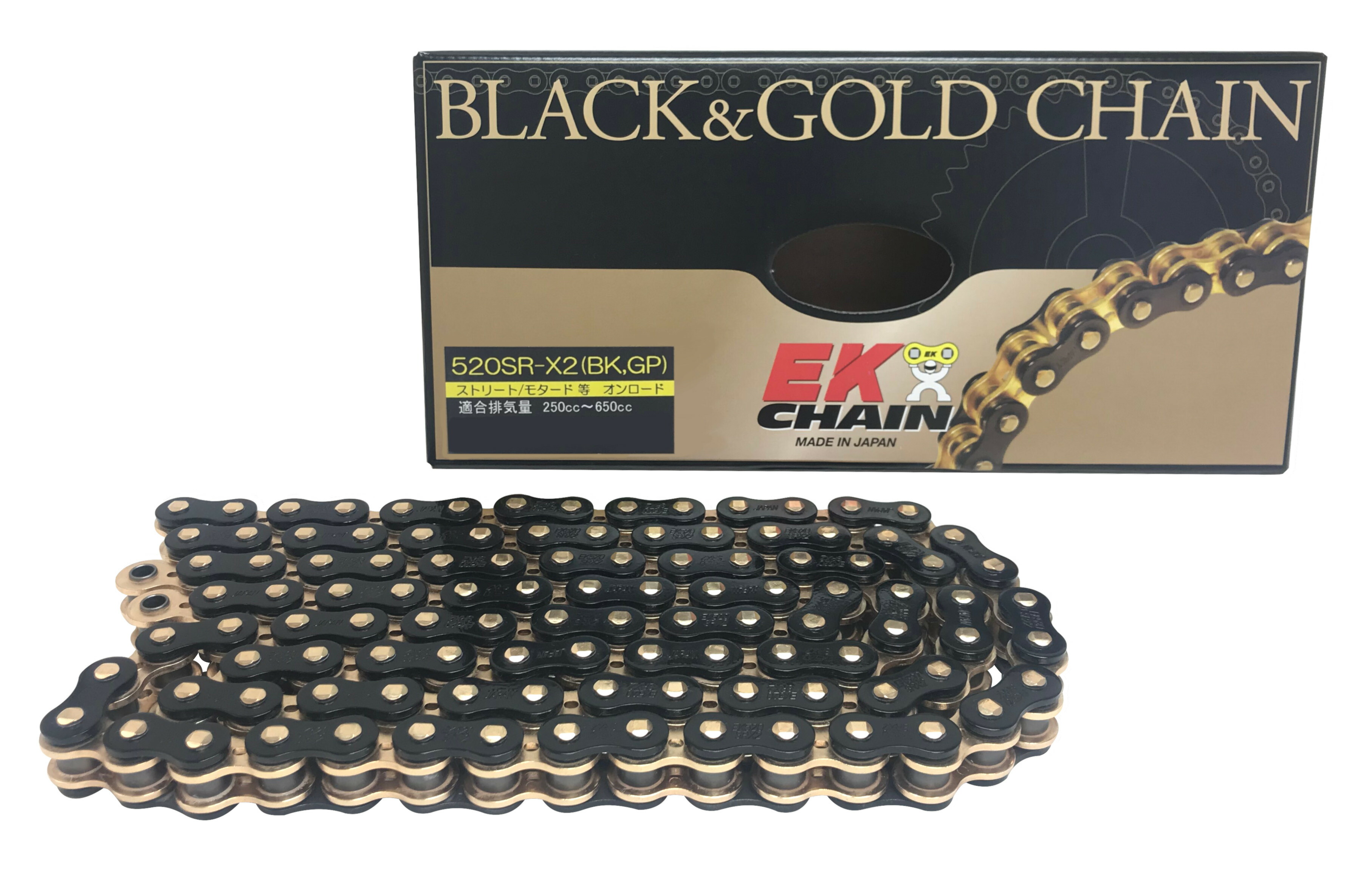 EKチェーン(江沼チェーン) バイク用チェーン 520SR-X2 (BK/GP) ブラック/ゴールド 110リンク MLJ カシメ