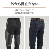 蒸れ防止のために、お尻とひざ裏だけコーティング無しの生地を採用したハイブリット仕様。