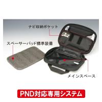 ラフ&ロードならではのバーパッドベース付きポーチ。ナビ、スマホ等の収納に最適。前面がガジェットスペース、その後ろに小物収納スペースがあります。