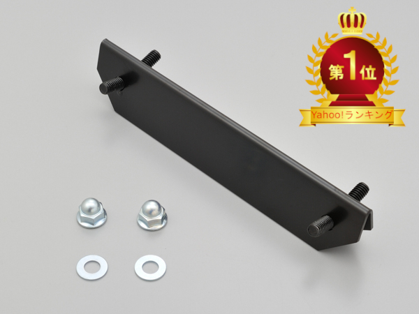 角度付き(+25°)のナンバーステー。本体スチール製黒亜鉛メッキ仕上げ。車体側&ナン