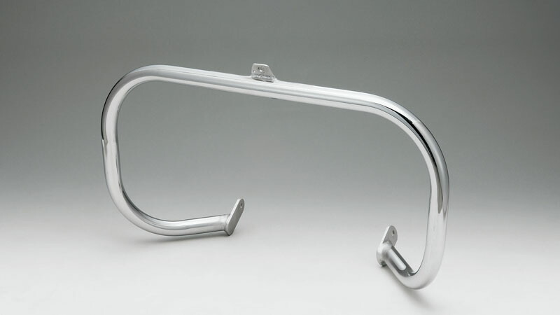 アメリカンのクラシックカスタムに不可欠なデコレーションバンパーです。ドレスアップ効果に加え、立ちごけ等の軽度なアクシデントからエンジンをガードいたします。