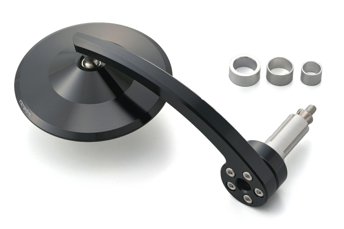 ヨーロッパでは定番化しつつあるバーエンドミラー。ドイツ人デザイナーによる洗練されたデザインが人気のアルミ削りだし製。アグレッシブで特徴的なデザインは新型スポーツネイキッドにベストマッチ。専用バーエンドミラーアダプターを付属したセット。