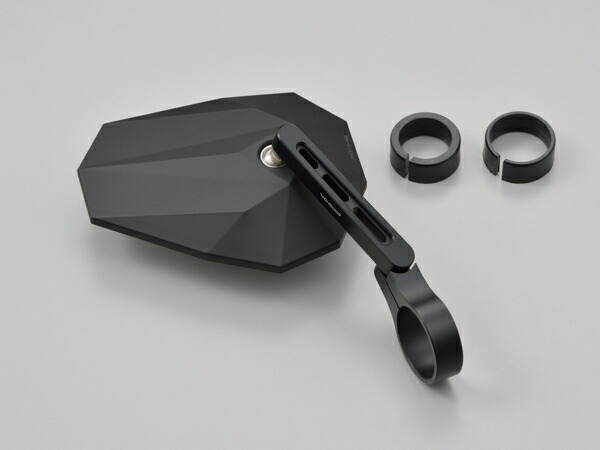 エッジの効いたステルス戦闘機を思わせる10角形デザインをマットブラックで仕上げた高品質のプラスチック製ミラーヘッドに、シャープなアルミ製ミラーアームを組み合わせたバーエンドミラー。