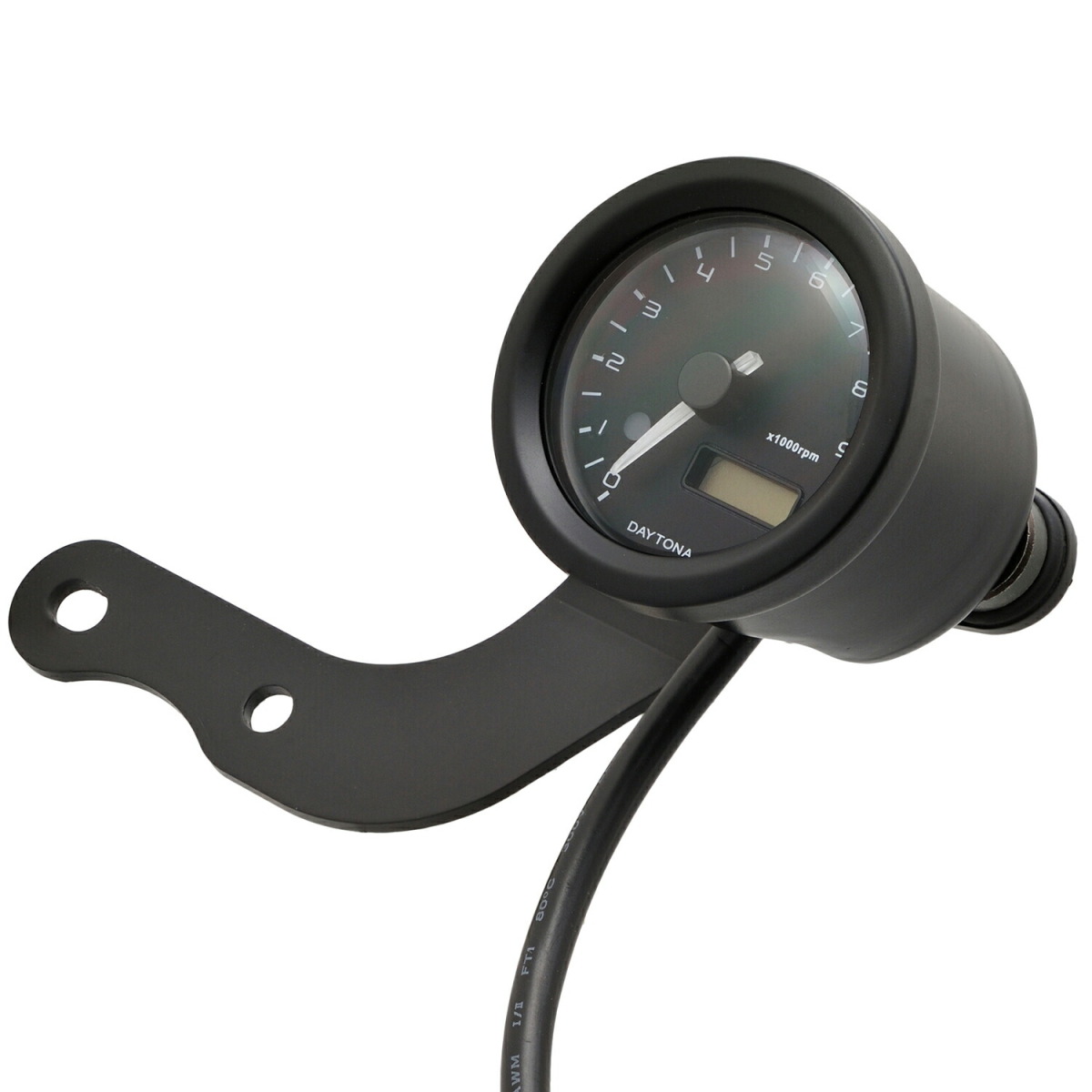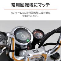 純正スピードメーターの右側に VELONAΦ48タコメーターを装着できるボルトオンキット。実用回転域にマッチした9000rpm表示(ブラックボディ/ブラックパネル)。取付ステーはメーターへの振動を軽減するラバーマウント式です。