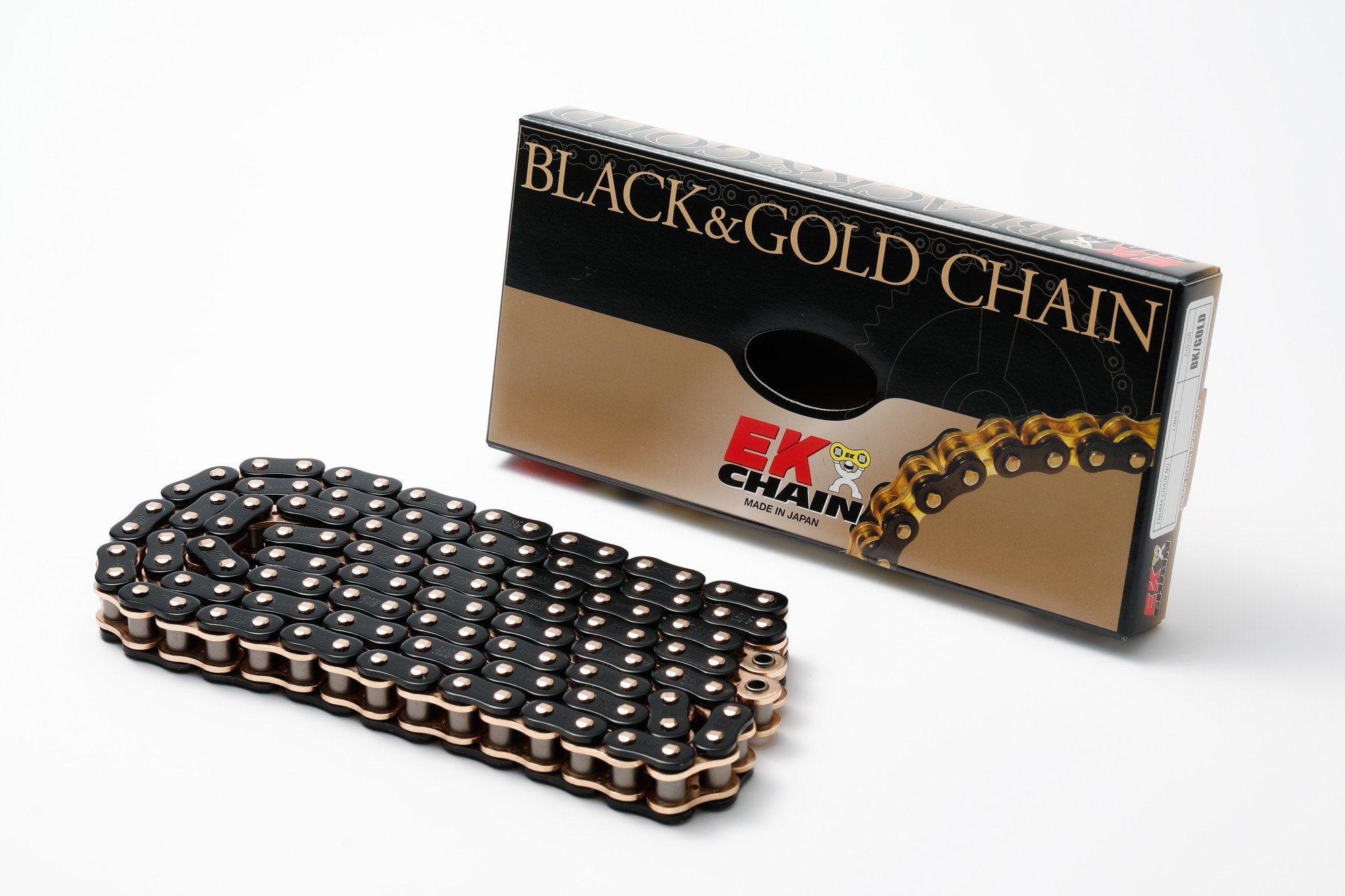「ブラック&ゴールド」カラーは、株式会社江沼チヱン製作所だけが販売する特別なカラーで、外プレートはブラック塗装を施し、内プレート及びピンへのゴールドメッキがよりブラックを引き立たせます。