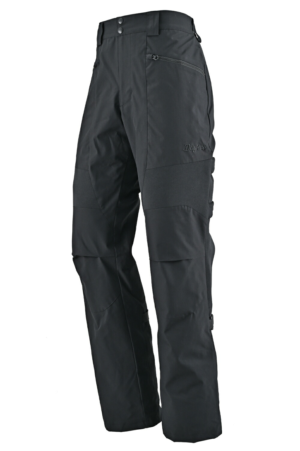 裾ジップによりブーツアウトがしやすく、幅広ベルトループによりバイク姿勢でも外れにくく、違和感のない固定が可能。
