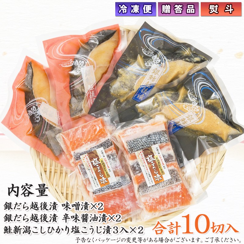 ギフト 贈り物 海鮮 漬魚 お魚ギフト 銀だら越後漬 鮭新潟コシヒカリ塩こうじ漬 3種10切 詰合せ お祝い お返し 爆買