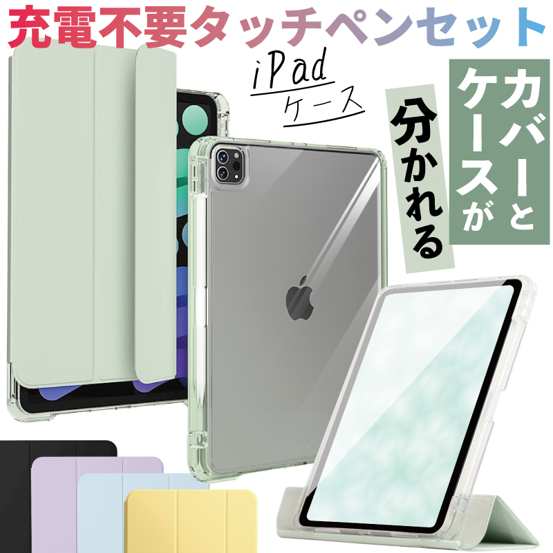 タッチペン付 縦置き可能 ペンシル収納 iPad ケース A16 第10世代 Air 11インチ M3 M2 Air5 10.9 10.2 第9世代 pro11 オートスリープ スタンド 軽量 クリア