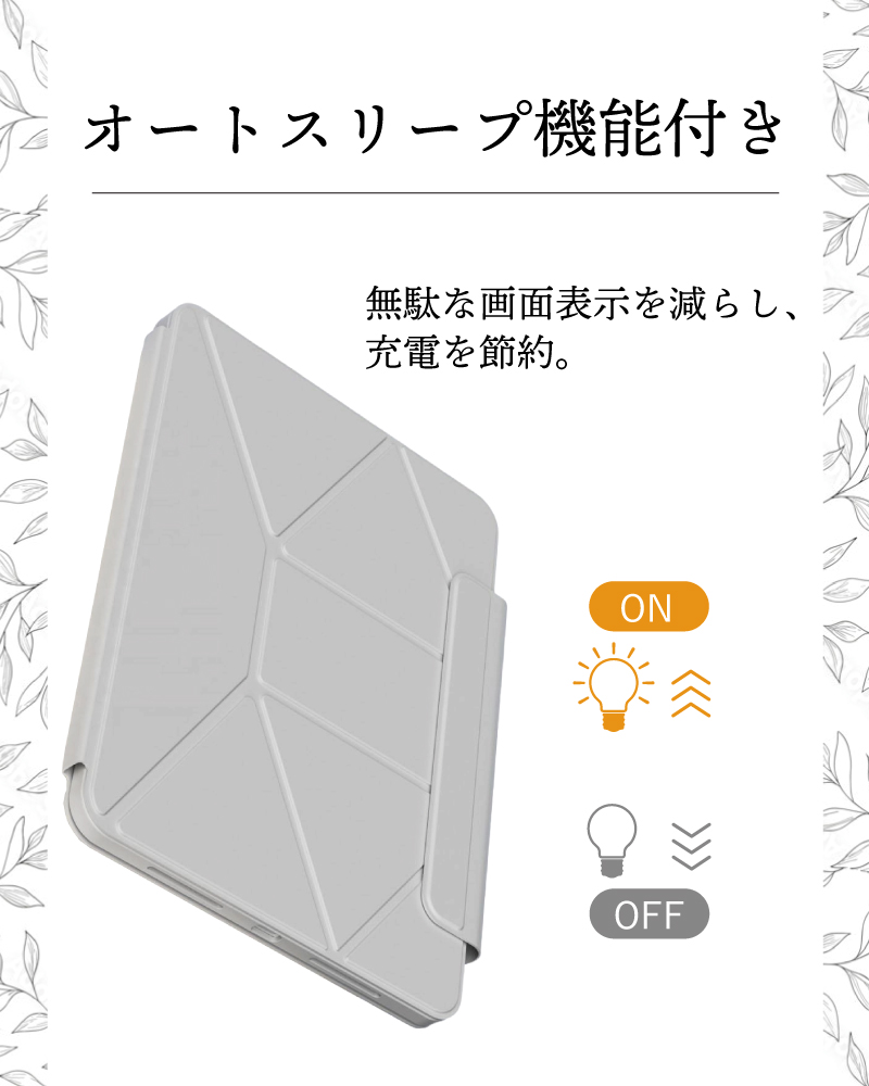 カバーを閉じると自動でiPadの画面をoffにして、充電を節約します。