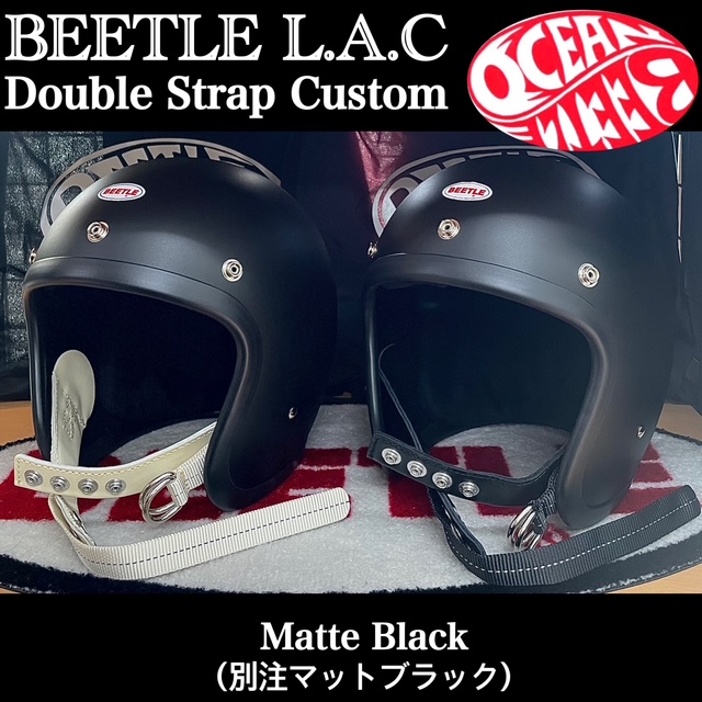 オーシャンビートル ヘルメット 廃盤 旧型 L.A.C マットブラック ダブルストラップ仕様 モトブルーズ別注 艶消し LAC カスタムストラップ ジェット ジェッペル