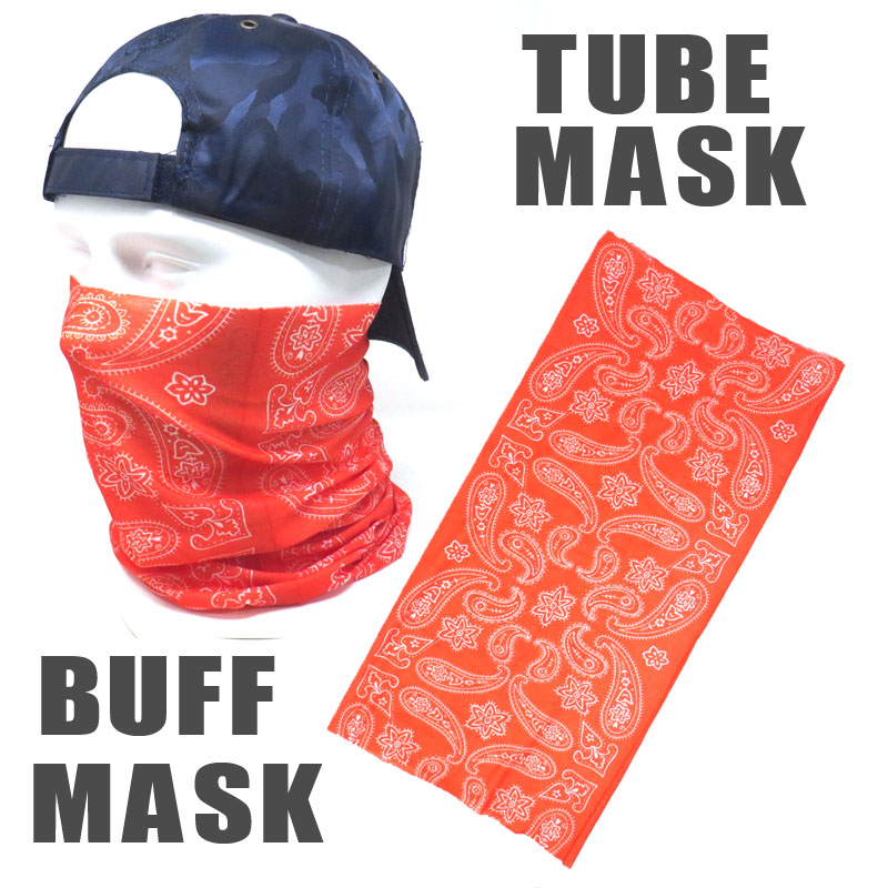 【メール便送料無料】バフマスク ストレッチ素材チューブマスク『オレンジペイズリー』 フェイスマスク