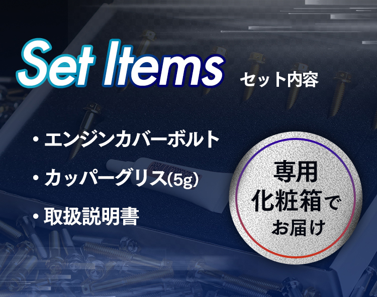 ・セット内容:エンジンカバーボルト、取扱説明書、カッパーグリス(5g)