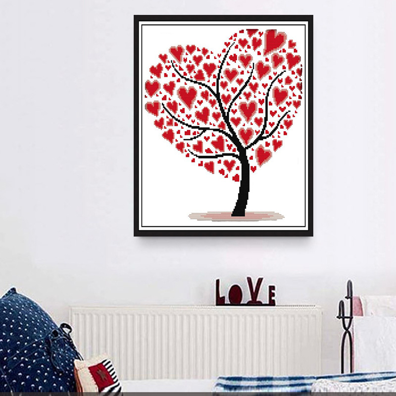 クロスステッチ ラーブ 愛の木 フォト風 刺繍キット 壁に貼るフレーム ハート ツリー 手芸キット 壁掛け 図案 初心者 簡単 刺繍 送料無料