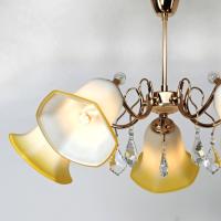 マンションにも適用 〜8畳目安 ■サイズ:直径=66cm 高さ=43cm 重さ≒3.2kg 5 灯タイプ ■材質&色:本体 ⇒ スチール(金色メッキ) カップ ⇒ ガラス(ホワイト レモンイエローの縁) ■飾り:クリスタル(カットガラス クリア) ■ライトコントロールスイッチ(LED調光器付き壁スイッチ)に対応しておりお好みの明るさに調整可能です(調光器対応LED電球と併用の場合のみ) |