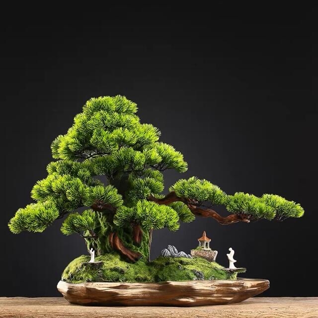 インテリアグリーン 高級模造迎客松盆栽 置物 禅意迎客松盆栽装飾品 人工観葉植物