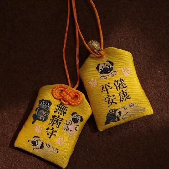 パグお守り無病守 犬用お守り 祈願厄除け癒しグッズパグ柄布製インテリア雑貨