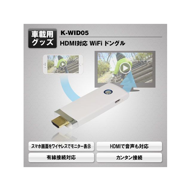 HDMI対応車載用オンダッシュモニターと装着すれば、面倒な配線をすることなくスマートフォンとの接続ができます。