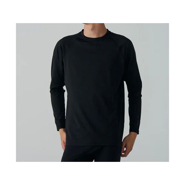ルーズフィットでゆったりとした着用感の保温インナーシャツ。デッドエアを溜め込み身体を保温する。冬場のイヤなパチパチ感を抑える制電加工を施した素材に加えて、静電気を抑えるステッチを入れることで静電気をケア。縫い目を平らに仕上げ、ごろつき感を解消するフラットシーマー仕様。