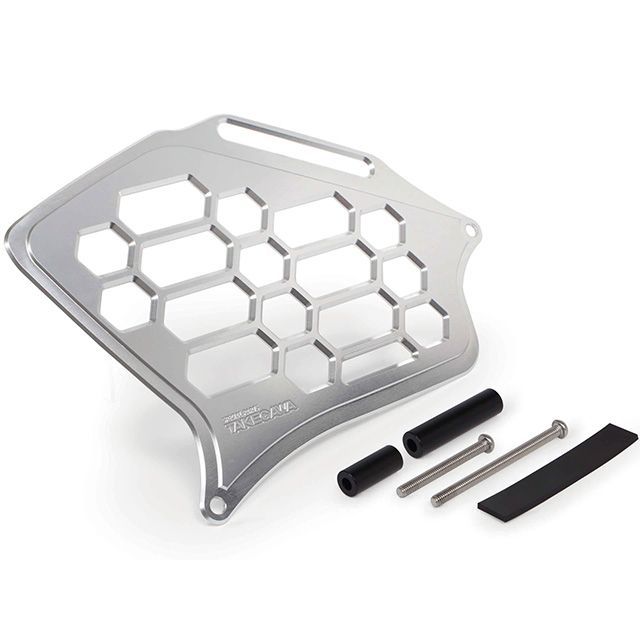 ラジエターの冷却効率を考慮し、ガード形状に複数の穴を設けています。 ガードには切削加工により、SP武川ロゴを入れております。