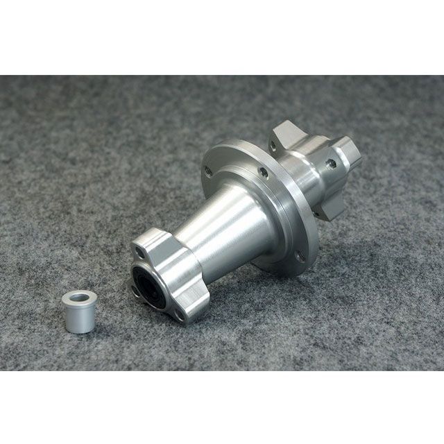 これまで、標準ハブにワイドスペーサーを追加した3ピース構造でしたが、部品点数が多いとメンティナンスの対象となるベアリングやカラーも多くなり、維持管理上不都合でした。