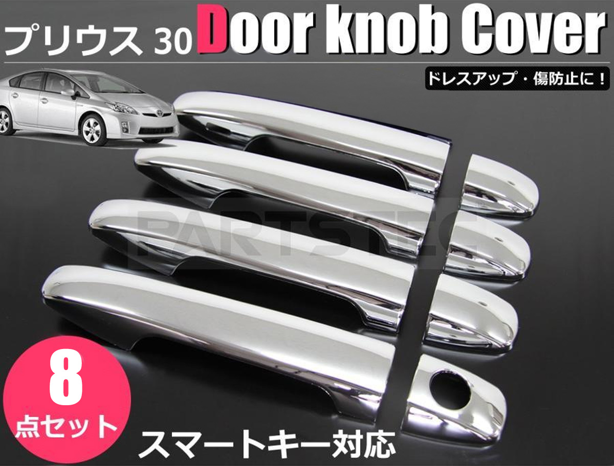 30系 プリウス 前期 後期 ドアハンドル カバー 8点 スマートキー対応 メッキ 1台分 クラウン カローラ マークX / 147-159 SM-N