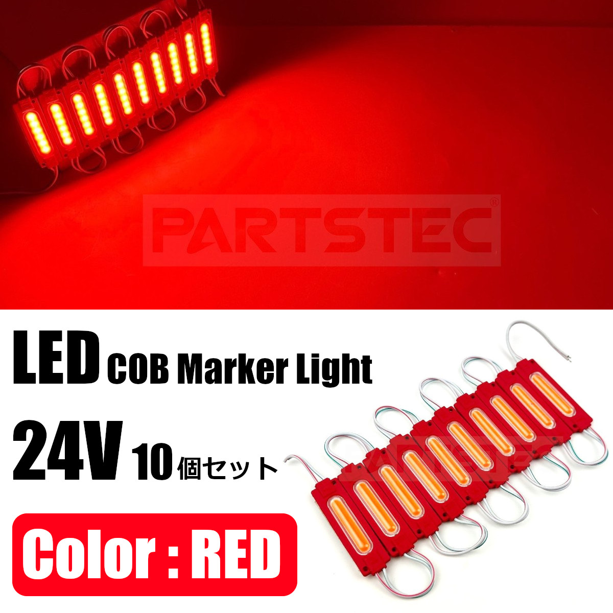 24V トラック LED COB シャーシマーカー 10個 レッド 赤 タイヤ灯 スティックライト サイドマーカー ダウンライト 路肩灯/146-49 N-3