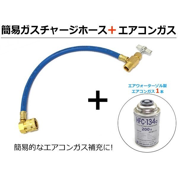 エアコンガス チャージホース + R134aガス 1缶セット マニホールドゲージ カーエアコン 冷媒ガス補充 クイックカプラー付/7-52+155-2