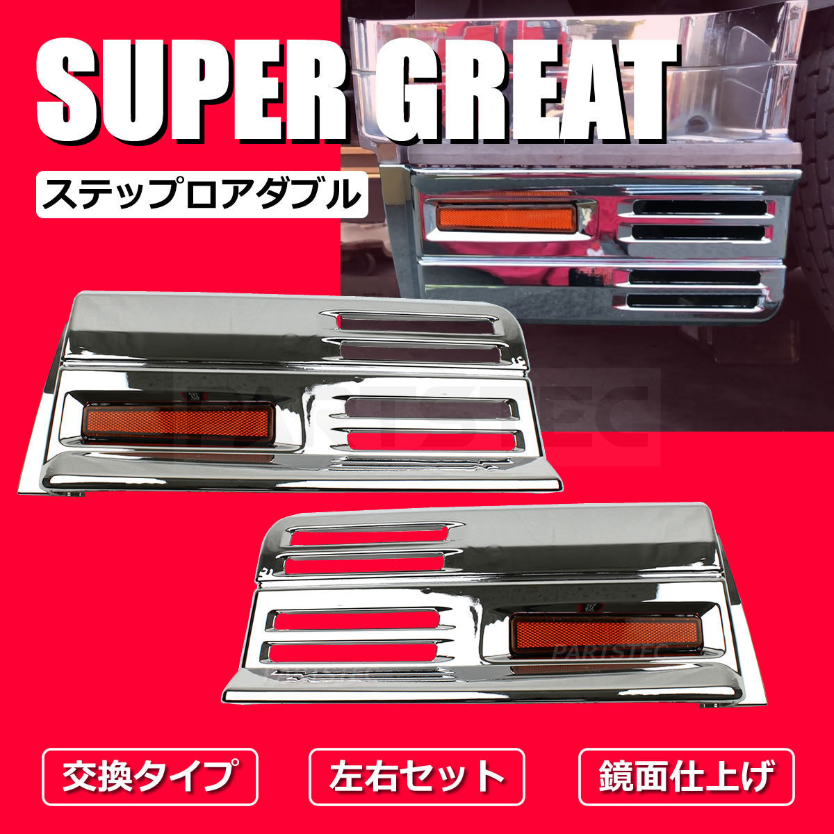 三菱ふそう スーパーグレート メッキ ステップ カバー ロア ダブル 左右セット リフレクター付 リップ装着車 デコトラ /147-387
